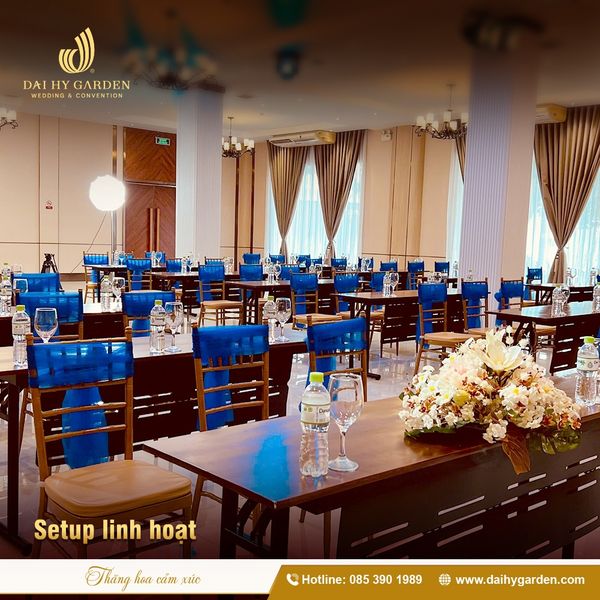Không gian tiệc có thể được tổ chức ngay tại hệ thống nhà hàng của Đại Hỷ hoặc triển khai setup lưu động tại cửa hàng, showroom, văn phòng – đảm bảo thuận tiện cho khách mời, đồng thời mang lại trải nghiệm gắn kết và ấm cúng.
