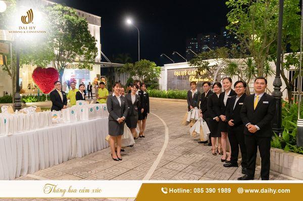 - Lựa chọn địa điểm phù hợp: Ưu tiên không gian sang trọng, dễ di chuyển, có sức chứa tương ứng với số lượng khách mời. Các trung tâm tiệc, nhà hàng cao cấp như Đại Hỷ Garden là lựa chọn được nhiều doanh nghiệp tin tưởng.