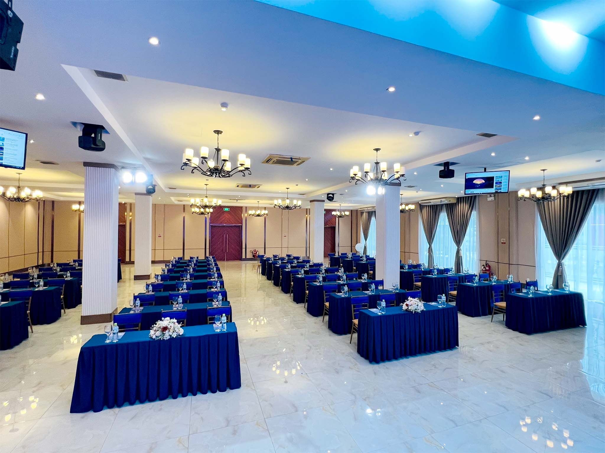 Không gian sang trọng với sức chứa hơn 160 khách, được trang bị màn hình LED sắc nét, sân khấu rộng cho hội nghị, hội thảo và các sự kiện doanh nghiệp chuyên nghiệp, hiệu quả.